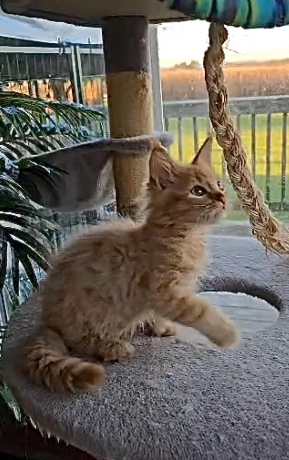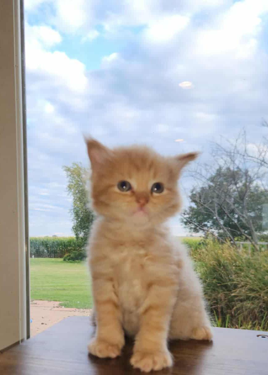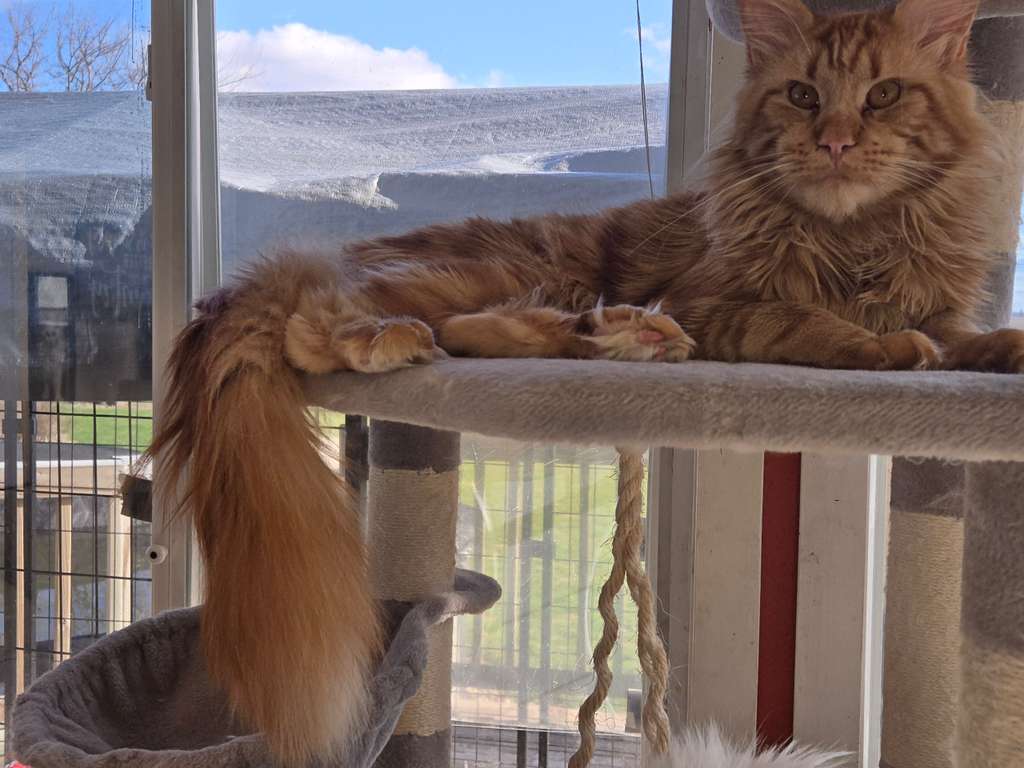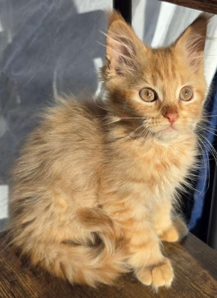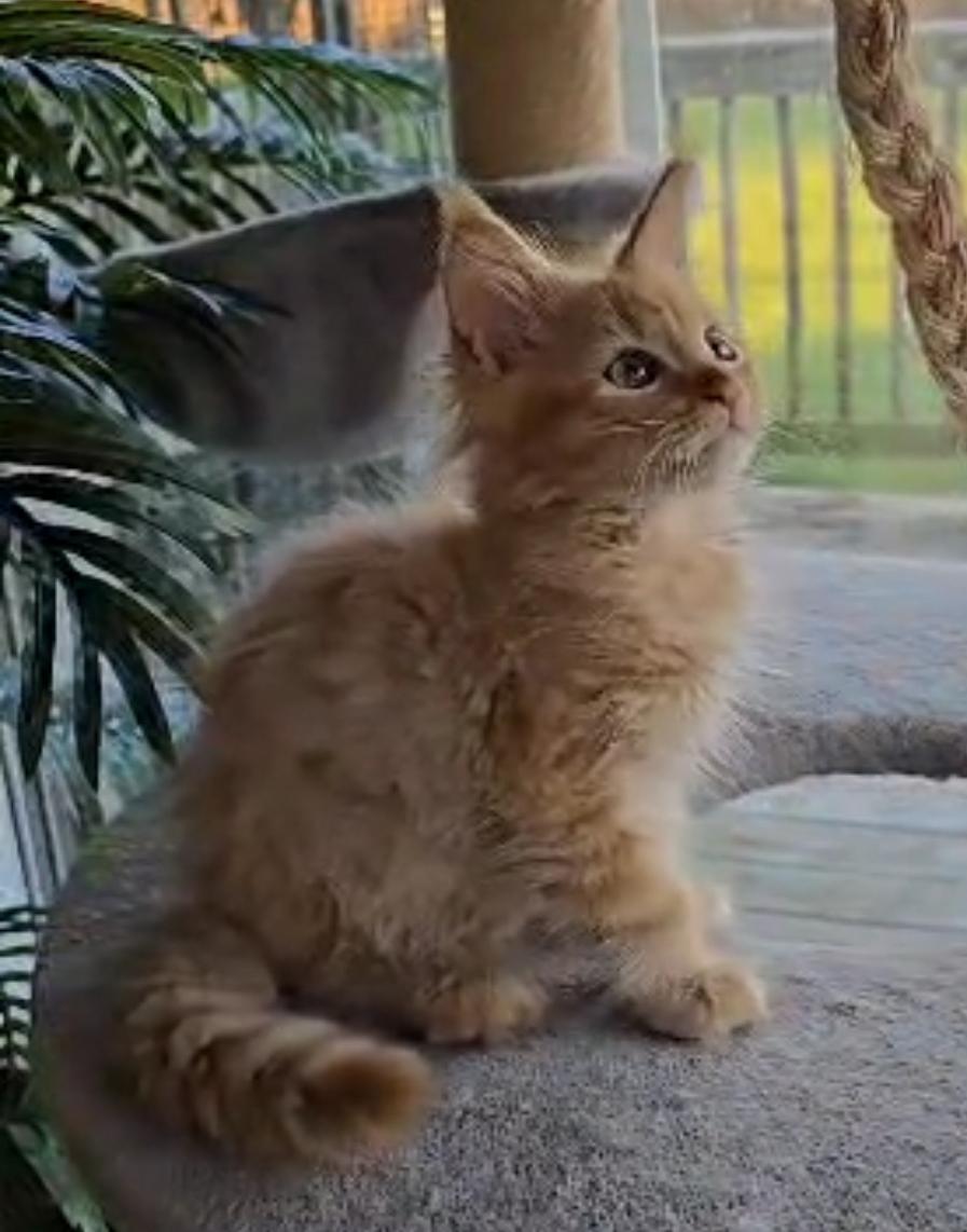MILTON, WI – Apple Cinder is a striking red tabby Maine Coon with a name as whimsical as his personality. Born in the warmth of summer, he carries a sunny disposition and a gentle, noble charm. With his luxurious coat and tufted ears, he’s destined to be a showstopper in any room. Apple Cinder may grow to be one of the largest cats in the neighborhood — with a heart just as big.