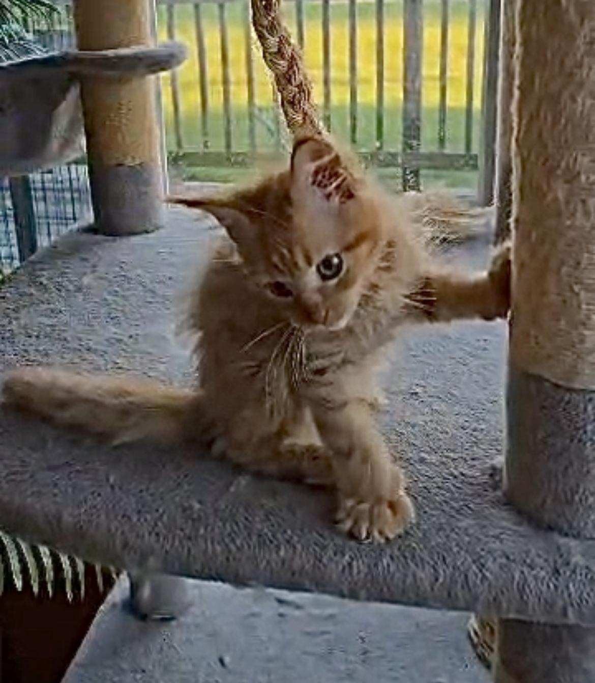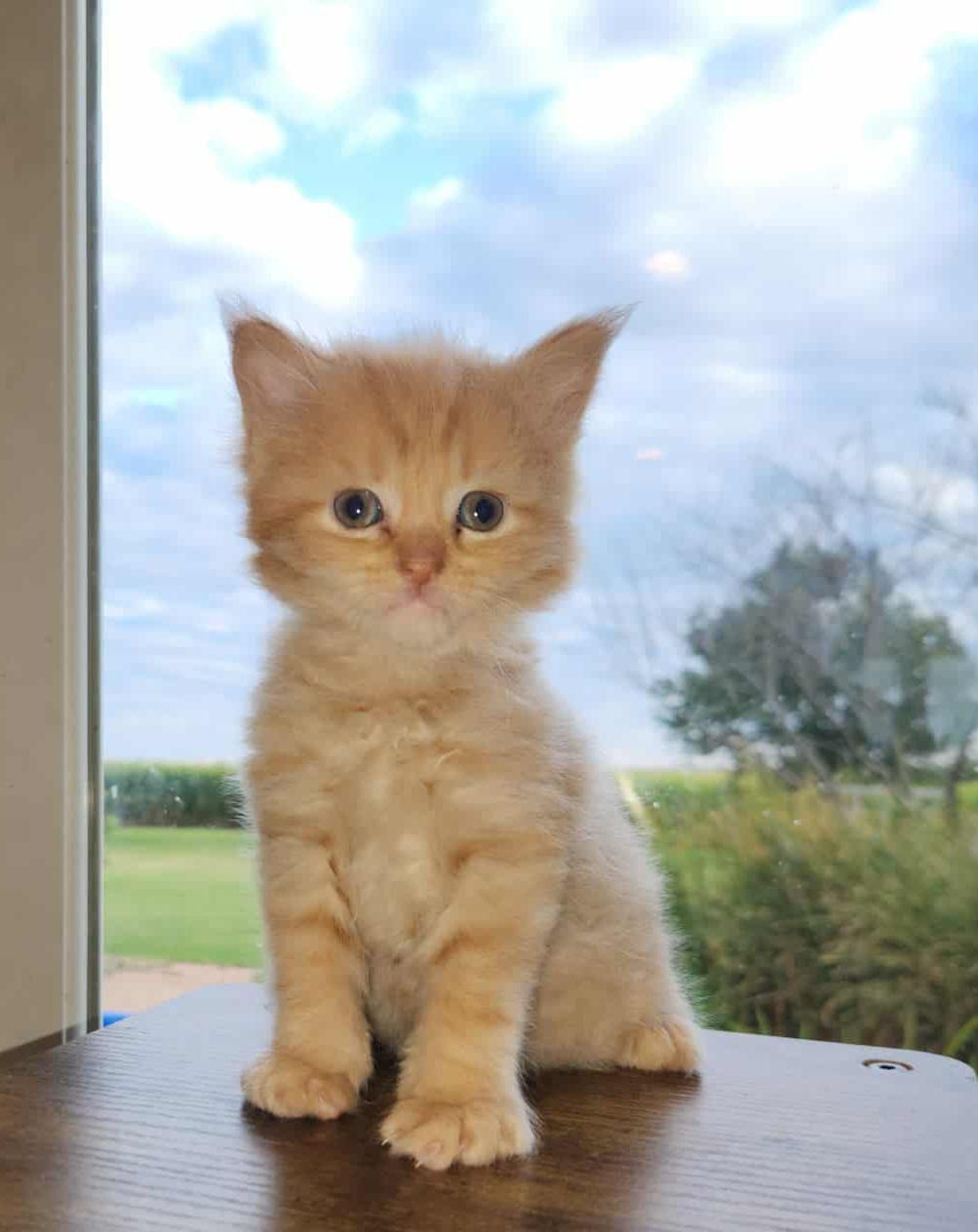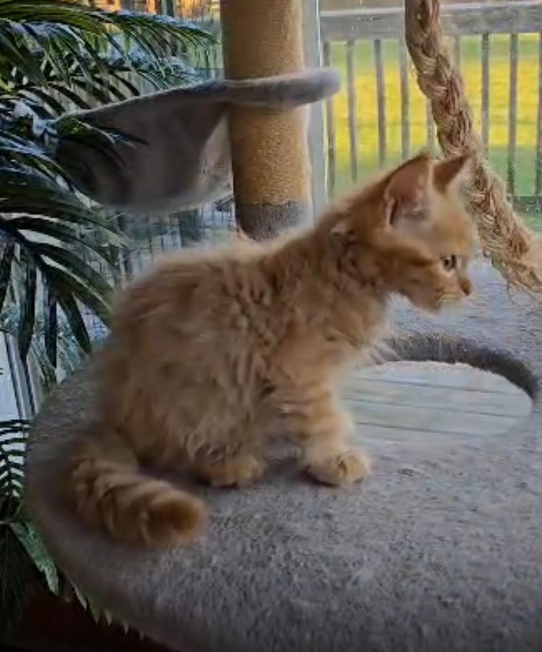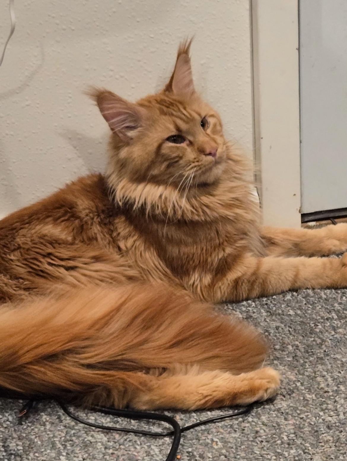 MILTON, WI – Apple Cinder is a striking red tabby Maine Coon with a name as whimsical as his personality. Born in the warmth of summer, he carries a sunny disposition and a gentle, noble charm. With his luxurious coat and tufted ears, he’s destined to be a showstopper in any room. Apple Cinder may grow to be one of the largest cats in the neighborhood — with a heart just as big.